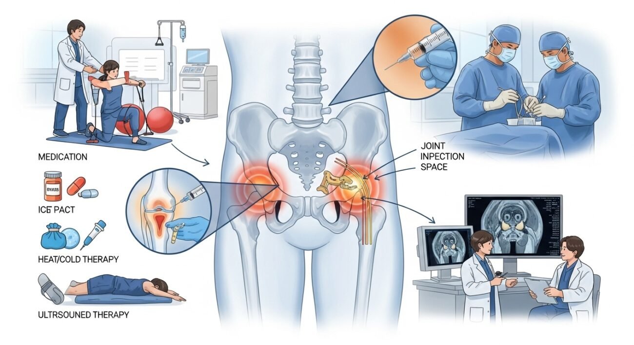 Hip pain management begins with accurate diagnosis — determining whether pain originates from the hip joint, periarticular soft tissues, or referred from adjacent structures determines the most effective treatment pathway. Physical therapy is the cornerstone of non-operative hip pain management; surgical intervention is reserved for conditions that genuinely require structural repair or replacement for restoration of function.